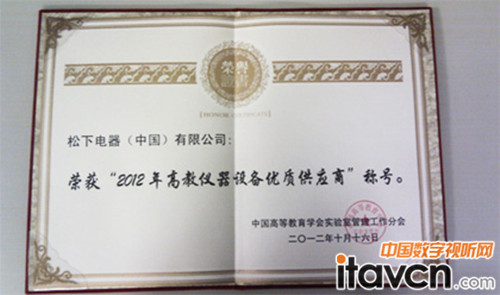 在同期展開的“高教儀器設備優質供應商”評選活動當中,松下電器(中國)有限公司也憑借著先進的技術和出色的投影機產品榮獲“高教儀器設備優質供應商”的稱號。