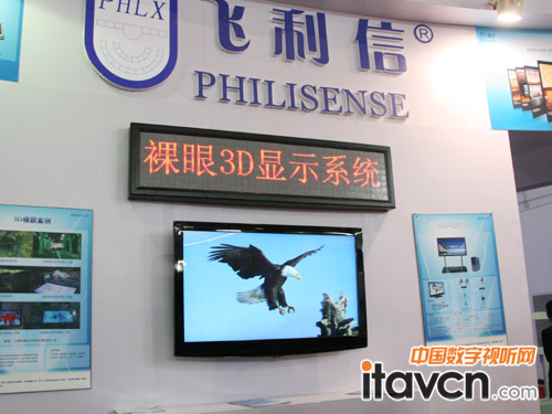 飛利信工作人員向我們介紹了裸眼3D顯示平臺的工作原理:在液晶屏的前面加一層柱狀透鏡,使液晶屏的像平面位于透鏡的焦平面上分成幾個子像素,透鏡就能以不同方向投影每個子像素,雙眼從不同的角度觀看顯示屏,就能看到不同的子像素,形成立體影像效果。