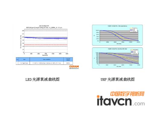 相比UHP燈泡投影機,LED光源的DLP拼接系統最顯著的改進是用戶不必再頻繁更換燈泡。標準投影單元的投影機使用的是UHP冷光源燈泡,有效使用壽命一般在6000-8000小時;而LED光源的壽命普遍較長,目前,應用在DLP投影單元中的LED光源的有效使用壽命可達到60000小時,相當于7年連續工作不需更換燈泡,是UHP光源使用壽命的8-10倍,降低了后期維護成本投入,實現系統零維護。
