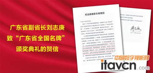 廣東省副省長劉志庚為當日的活動發來賀信,他指出:“廣東省全國名牌評價工作,是廣東省實施名牌帶動戰略的重要組成部分,此次評出的88家企業整體實力強、涉及行業多、覆蓋地域廣,集中展示出了廣東改革開放30余年的企業發展成果。”
