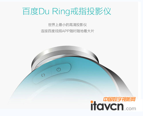 【中國數字視聽網訊】3月30日,百度視頻在其官方微博上發布了又一重磅智能硬件產品百度“Du Ring”戒指投影機。通過微博內容可以看出,該款外型為戒指的智能硬件產品主打賣點為“世界上最小的高清投影儀”,新奇的產品創意一經發布即引來廣泛關注,并贏得了諸多網友轉載。