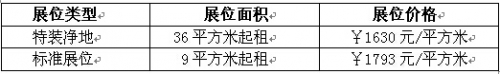 (標準展位配置:中英文楣板、兩只日光燈、地毯、兩張折疊椅、一張桌子、一個電源插座)