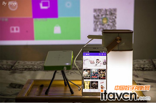 3、在使用過程中個人覺得音量還有些不足,于是我就借助耳機插口外接了一個小音箱助興。接上配送的迷你三腳架的時候,我發現這個三腳架的布局其實不是很合理,過于靠前,重心不穩。投影的時候機器必須放置在正中,斜角投射不能調整,導致在家躺床上看電影,還必須把機器放床尾,要是放床頭的話會導致投射的畫面過大,看著人頭暈眼累的。