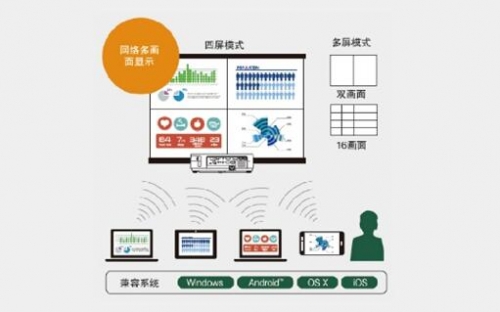 鴻合HiteVision超短焦激光投影OPS一體機與各類設備都能簡單、輕松連接,帶來豐富多樣的教學方式。它可同時和16部電腦/Pad/手機連接,方便教師隨時調閱學生學習進展;更能支持4畫面同時顯示,方便呈現更具對比性的教學示范。