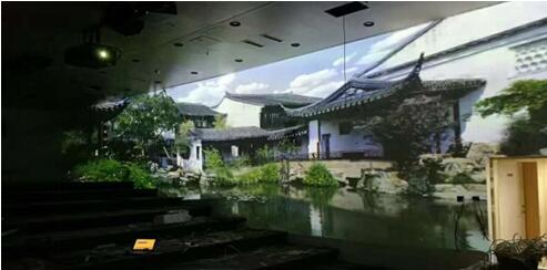 該功能廳引入沉浸式虛擬體驗技術,環境設計采用未來感十足的太空艙設計,獨立的投影空間配合現代數字虛擬技術和環繞視聽系統,極強的代入感讓旅客仿佛身臨其境,打造富有情境的空間體驗。項目共引進1臺12,000流明的松下三芯片DLP高清激光工程投影機PT-SRZ12KC 、9臺5,400流明的松下單芯片DLP激光高清工程投影機PT-FRZ570C以及安恒集團自主研發的SECO Show智能多媒體顯示系統。其中,9臺PT-FRZ570C用來投影環形屏幕,PT-SRZ12KC用來投射7.65m * 4.78m的主屏幕。
