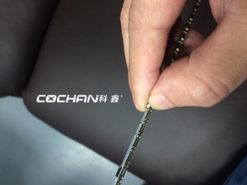 這里還是要賣個關(guān)子。上圖是最新的側(cè)貼正發(fā)光貼片工藝,有機(jī)會實際接觸產(chǎn)品的時候,可以試一試,貼片燈珠是很難扣掉的,這對產(chǎn)品穩(wěn)定性來講,工藝改良的成果顯而易見。怎么實現(xiàn)的?這里就不重點講了。這種是上一代,老的側(cè)貼正發(fā)光工藝了,貼片燈珠使勁的話,還是可以扣掉。因此穩(wěn)定方面來講比最新一代的貼片工藝還是有一定的差距。當(dāng)然兩者只是在穩(wěn)定性方面有差異,顯示效果是一樣的。