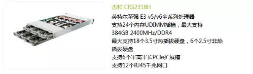 據(jù)消息爆料,這款杰和2U 6節(jié)點服務器CRS2318H是一款精心設計、性能優(yōu)異、安全可靠的虛擬化服務器產(chǎn)品。這款服務器在2U機架內可裝6個獨立服務器模塊,每個模塊可支持Intel至強 E3 v5/v6全系列、第6代/7代Core、Pentium&Celeron系列處理器、搭載高速DDR4內存及支持SATA 硬盤熱插拔技術。
