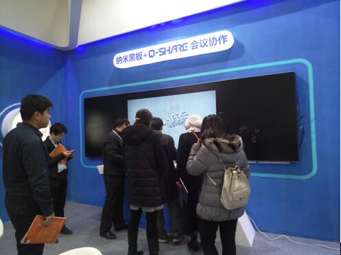 除了在互動體驗上做足功課外,同輝信息推出的智能會議協作方案也是一大亮點,引發了與會者的極大熱情。該方案由智能納米黑板和Q-Share智能交互會議終端聯合打造,可以實現一鍵投屏、多人會議分享。