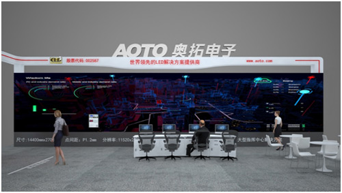 奧拓電子12K x 2K大型控制指揮中心方案,由最新的CLD系列產品拼接而成,基于自主研發的64K控制系統,系統控制臺可對LED顯示屏上超巨幅畫面實時控制;現場幾十路實時監控信號可投放在LED大屏上,視頻信號數據傳輸的安全性與及時性,以及“智能護眼模式”的奧拓電子LED顯示屏,解決終端客戶痛點,盡顯科技魅力,讓客戶感受真實的監控中心現場。