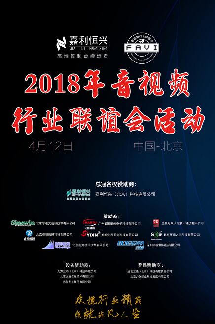 2018年4月12號,由音視頻行業(yè)聯(lián)誼會(FAVI)主辦、嘉利恒興(北京)科技有限公司獨家冠名的“2018年音視頻行業(yè)聯(lián)誼會活動”在京舉辦。近300人音視頻系統(tǒng)行業(yè)精英參加了該活動。