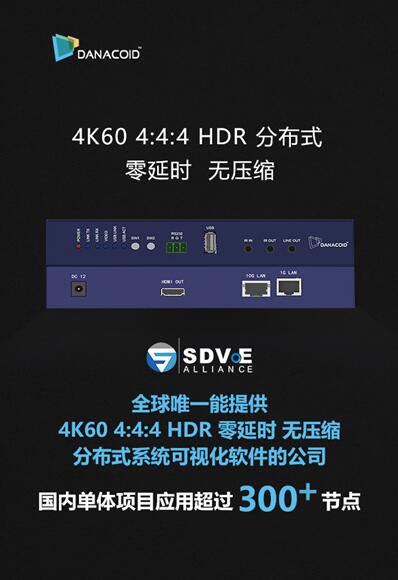 DANACOID的4K@60 4:4:4 HDR、零延時、無壓縮分布式系統基于萬兆網絡,采用先進的分布式組網技術,節點設備可以任意擴展,具有前所未有的可擴展性、多功能性,畫質可以做到零延時、無壓縮、無偽影,為用戶提供無與倫比的圖像質量,主要是用于智慧醫療、廣電、會議、體育場館等對畫質要求比較高領域。目前,大因的4K@60 4:4:4 HDR、零延時、無壓縮分布式系統已經在國內做的單體項目應用已超過300+節點,有著非常成熟的技術與豐富的經驗。
