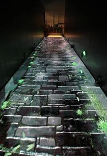 “雨巷”采用LED互動地屏,會感應觀眾腳步,在地面上浮現片片漣漪