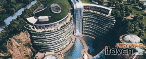 【中國數(shù)字視聽網(wǎng)訊】2018年11月15日,世界首個以深坑巖壁曲面建造的酒店宣布開業(yè)了!這個號稱自然傷痕下的建筑傳奇,無論是鳥瞰還是側(cè)視,都呈“c”字型,利用地上、地下、水面和水下不同層次的景觀,營造出不同主題的創(chuàng)意景致,成為上海市的又一地標(biāo)性建筑。