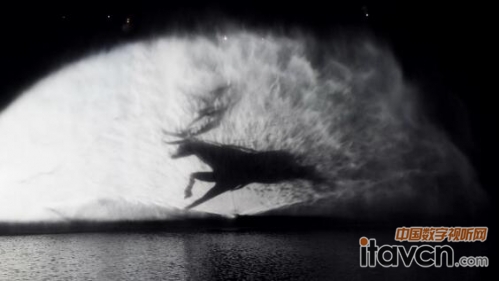 當(dāng)鹿出入畫面時,自然的形成一種變化莫測、騰空穿越的感覺,再配以現(xiàn)場燈光音響,場面更顯宏大,產(chǎn)生一種虛無縹緲和夢幻感和通透立體的景深感。