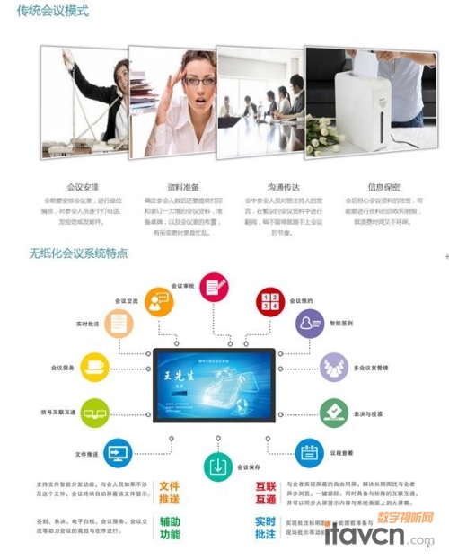 【數(shù)字視聽網(wǎng)訊】在商務(wù)領(lǐng)域忙碌的日常中,開會討論是必不可少的一種上下屬溝通方式,會議討論過程中,要整理的資料與內(nèi)容復(fù)雜繁多。工作討論、商務(wù)談判、產(chǎn)品演示、來賓會見、政令下達等等都需要耗費眾多的勞力、財力、物力及精力,我們的——無紙化會議系統(tǒng),可以更好地達到少差錯、少遺漏、少浪費的目的,保證會議能夠順利流暢地進行。