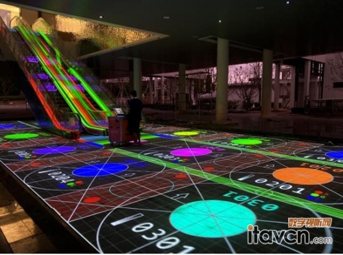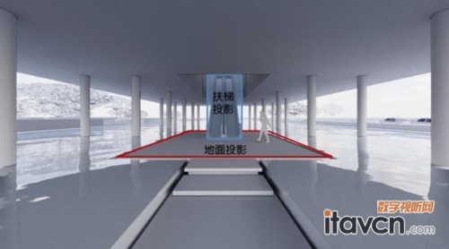 在此項(xiàng)目中,扶梯部分采用5臺(tái)松下PT-SMW53C工程投影機(jī),地面部分則采用了13臺(tái)松下PT-SMW53C工程投影機(jī),圍繞扶梯進(jìn)行投射。