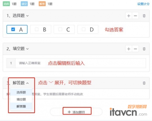 注意!設置計分這一步非常重要!設置了分數之后,在作業批改時,各位老師就可以進行打分,而且后續的作業成績也可以導出分數,便于大家掌握學生的成績和學習效果。關注小蜜蜂的老師可能也會發現,在往前也推送過答題卡的專題教程,文章詳細地介紹了如何創建答題卡,有興趣的老師可以關注微信公眾號”希沃易課堂小蜜蜂”查詢哦