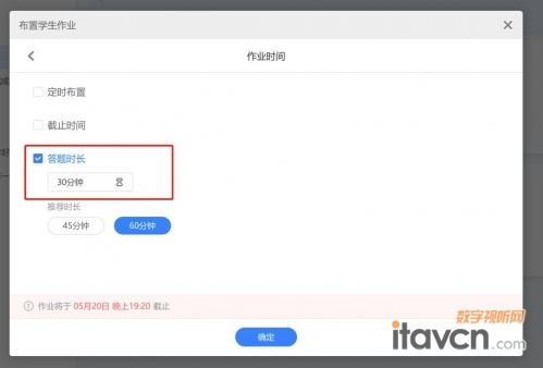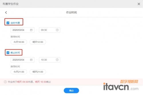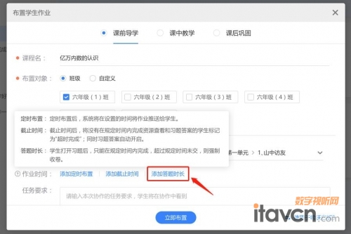 另外,在布置頁面,還可以設置作業時間,支持添加定時布置和添加截止時間: