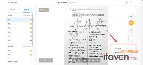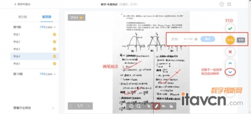 在打分頁面,我們可以看到“半對”的圖標,點擊即可輸入分數。后續還會上線評語功能,可以直接對學生的解答做出點評,既幫助各位老師做出個性化點評,也可以作為學生在家查漏補缺的依據。