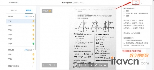 Ø 有的老師可能要批改很多班級的測驗,不妨試試快捷鍵批改,更加快速方便哦~在批改頁面的右上角有個?的圖標,點擊就可以看到可用的快捷鍵啦:A-全對;S-自定義輸入分數,按回車保存;D-全錯。巧用ASD,批改零煩惱~~