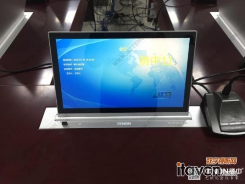 該項目主要安裝了TENON(騰中)液晶升降一體機、桌面式話筒、無紙化會議終端、數字會議控制主機、數字編解碼器、數據交換中心、音柱音箱等。通過這些設備,實現對無紙化智能會議系統、擴聲系統、會議討論系統的有序控制,方便快捷。