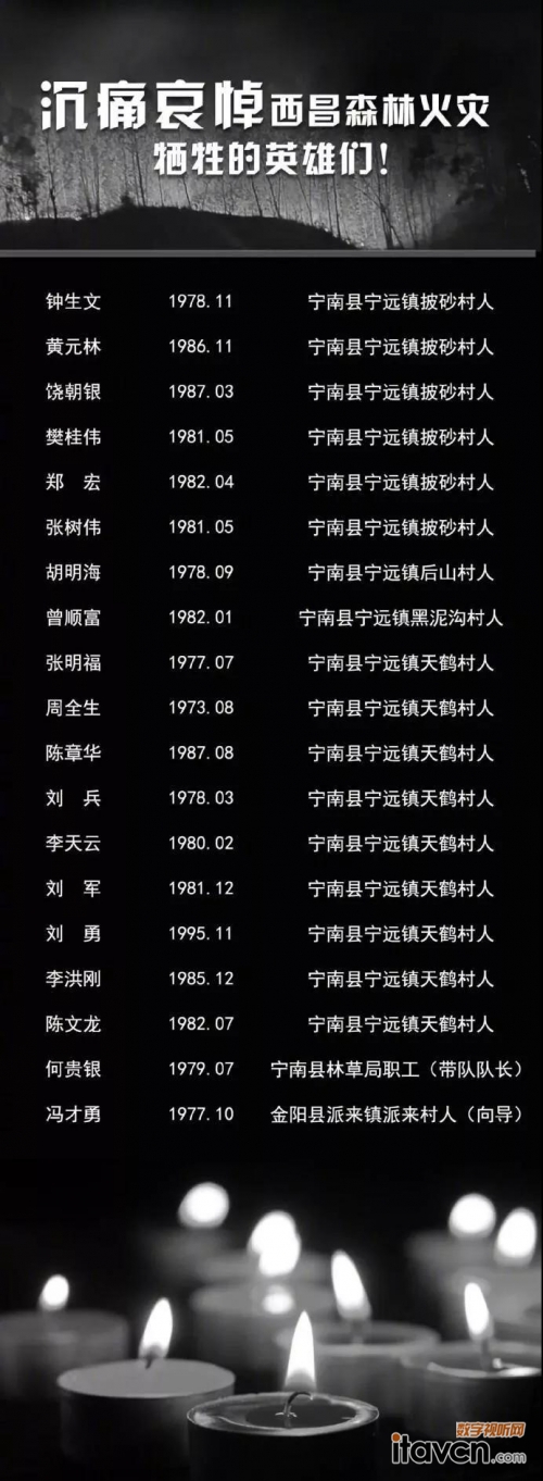 【數字視聽網訊】一年前的2019年3月30日,四川涼山木里縣發生森林火災,奪走了30位救火英雄的生命。一年后的2020年3月30日,四川涼山西昌市突發森林火災,19位救火英雄犧牲,直至4月2日12時01分明火才全部撲滅。同樣的時間點,同樣的地點,同樣是火災罹難,悲劇重演,我們不僅要解決災難,更需要反省。