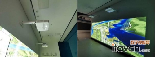 此次,2臺Acer LU-U500激光短焦投影機強強聯手,采用并排懸掛的方式為崇州大數據中心打造了6.15米x2.05米的寬幅拼接投影。得益于超短焦激光投影技術,LU-U500可在51厘米的短距離投射出100英寸的超大畫面,這使得投影機的安裝極具靈活性,在空間有限的展示廳里,依然可以呈現巨幅投影。
