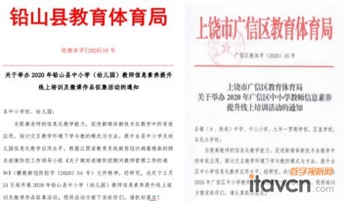 2月24日-4月3日,由上饒廣豐區、廣信區、鉛山縣、余干縣、德興縣、玉山縣教育體育局聯合希沃開展2020年全區/縣中小學教師信息技術線上培訓,培訓共覆蓋19000多名教師,其中廣豐區、廣信區、鉛山縣、玉山縣17122名教師采用了希沃學院提供的“互聯網+研修”模式,報名參加培訓的教師利用希沃學院平臺進行在線學習和考核,培訓共有36節短視頻課程和8次考核,培訓合格后頒發培訓結業證書。