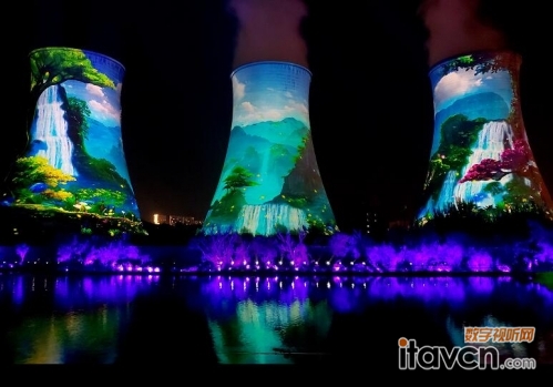 在北京后花園的張家口下花園,世界首創高塔投影秀《巔峰震撼-西游歸來》大型實景劇,運用12臺NEC 4萬流明4K雙色激光旗艦級工程投影機,開創性地以近百米發電廠冷卻水塔為背景,在超過10000平方米的高塔“屏幕”上,演繹了一場氣勢恢宏的傳奇劇目。