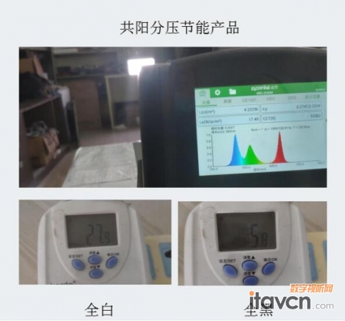 在亮度參數(shù)大致相等情況下,節(jié)能效果約為40%。(實(shí)際功率=全白功率-全黑功率)