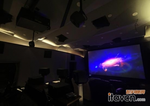 視聽室各個細節都非常專業,無論是吸音墻壁、音頻制作設備、多聲道監聽音箱、全景聲系統、影音播放器、影院沙發等,讓人感受到這里兼具錄音/調音室和審片室的功能,既可以完成演奏廳級別的音頻制作,又可以呈現影院級別的大畫面。