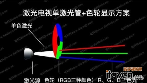 色輪上涂有紅、藍、綠三種顏色的熒光粉,激光光源通過色輪上的熒光粉就可以打出對應顏色的光,實現(xiàn)正常的RGB色彩。