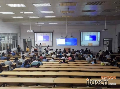 用一句陜西話來說,西安科技大學“嫽扎咧”,的確這所大學美得很。學校位于十三朝古都——西安,在這上學不僅能盡情領略盛世長安漢唐風韻,還能縱覽網(wǎng)紅城市的時尚繁華。學校歷史可以追溯到1985年,百年發(fā)展成就不凡。目前學校實力強悍,師資力量雄厚,教學資源豐富。教學設備更是尤為先進,采用216臺NEC HLD固態(tài)光源投影機CU4200XD打造多媒體教室。在中型教室選用兩臺設備進行正投多通道融合安裝帶來大尺寸高清畫面,確保兩側和后排學生也能清楚看清每一處畫面內(nèi)容;在階梯教室設計全新方案,中間主屏幕選用兩臺NEC設備融合投影與兩邊屏幕實現(xiàn)同步顯示,實現(xiàn)200人大教室的視覺全覆蓋;如此大規(guī)模的采用超短焦、固態(tài)光源投影機來搭建多媒體教學系統(tǒng),在全國范圍內(nèi)也堪稱首屈一指。