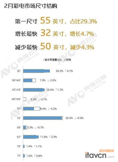 大屏君注意到,即便在國內疫情最嚴重的的2月份、彩電銷量同比下滑27%的背景下,大尺寸電視也在保持3成以上的增長。——大尺寸電視特別依賴線下渠道體系、特別對物流運輸和安裝敏感,疫情防控隔離措施嚴重限制這兩點的2月,大尺寸都能增長,這背后的“意義”非比尋常。