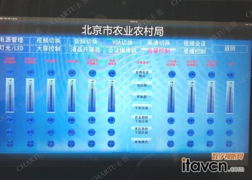 以長圖先進的中控CT-3系統替換掉現老化故障的控制系統,以高配置有線觸摸屏替換老舊的觸摸屏,完美解決北京市農業農村局應急會議室的故障問題。