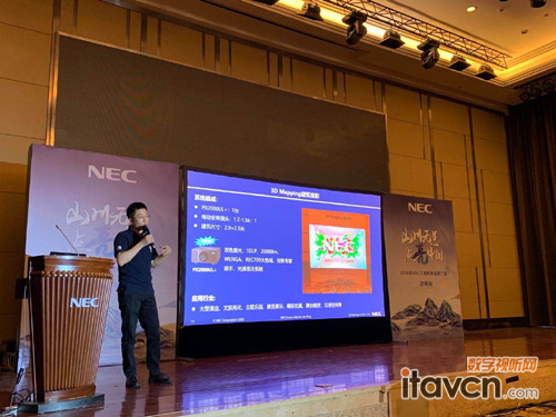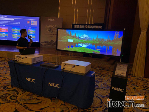 NEC投影機產品經理俞采光進行液晶激光投影畫面效果演示