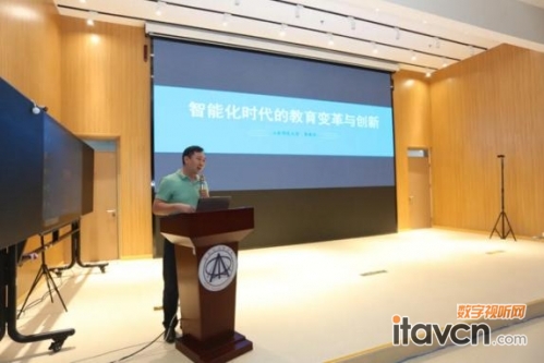 山東省智慧教育研究院李逢慶院長對智慧課堂政策進(jìn)行了解讀,主要以智能化時(shí)代的教育變革與創(chuàng)新為主題,延伸當(dāng)前教育信息化、智能時(shí)代教學(xué)變革、信息技術(shù)與教學(xué)融合創(chuàng)新三個(gè)部分,提出融合是實(shí)現(xiàn)教育教學(xué)流程再造與結(jié)構(gòu)重組的關(guān)鍵,簡單介紹“三個(gè)課堂”:專遞課堂、名師課堂、名校網(wǎng)絡(luò)課堂,而教育的規(guī)律自始至終都是因材施教,從‘一刀切的傳統(tǒng)教學(xué)模式’變革成為‘個(gè)性化數(shù)字化學(xué)習(xí)’,實(shí)現(xiàn)教育公平,提升教育質(zhì)量。