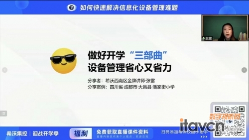 在本次直播中,希沃邀請了金牌講師張雷老師和電教達人宋迎輝老師前來為大家分享集控使用的小妙招。針對集控基礎功能的應用,張雷老師以四川成都大邑縣潘家街小學為例,總結出了“開學三部曲”,她表示,只要電教老師們做好這三步,設備管理就能省心又省力。