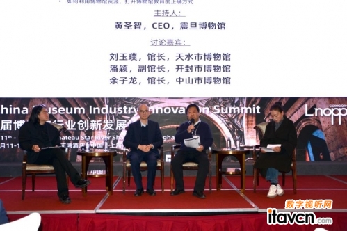 第一天下午的小組討論主題為:新形勢下,博物館的新“玩法”,該討論由震旦博物館CEO黃圣智主持,天水市博物館館長劉玉璞、開封市博物館副館長潘穎、中山市博物館館長余子龍積極參與了討論。嘉賓們圍繞新技術和場景力構建互動交流的展覽空間、新文創讓博物館掀起“文化”風潮、如何利用博物館資源,打開博物館教育的正確方式等話題展開了熱烈的探討和交流。