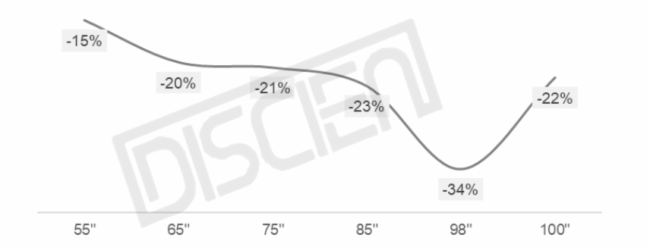 中國市場在“以舊換新“政策加速了消費市場對MiniLED背光電視的接受程度,從均價變化上看,2025年上半年主流尺寸均價同比降幅普遍超過20%,充分體現了政策和市場發展趨勢共同激勵了品牌對MiniLED背光電視產品的成本優化和產品設計下沉。