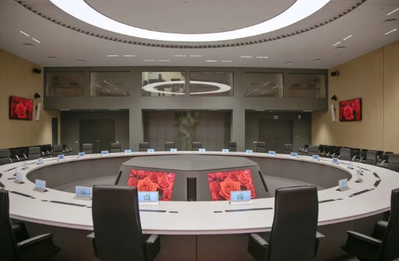 另外,在大型多功能報告廳中,VISSONIC議朗為其部署了超過800臺全套的無線會議系統,該系統搭載定向話筒以實現高質量拾音。同時,報告廳中還配備了VISSONIC議朗專業視頻設備,支持無縫視頻會議及現場直播。以及4K HDMI 視頻矩陣為大屏幕提供了清晰逼真的畫質表現,完美契合報告廳演示的視覺要求。