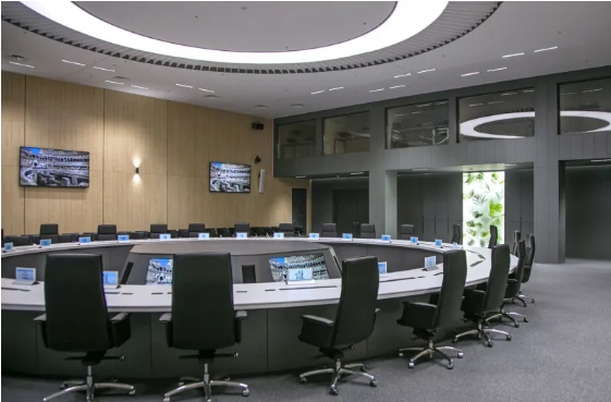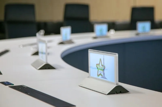 其中,在VIP會議室中部署了超過170個無紙化多媒體會議系統、電子銘牌系統。其中無紙化多媒體會議系統集成了可伸縮顯示屏、話筒、文件共享、電子簽到、投票及多語種譯員功能;電子銘牌系統則是對與會人員信息進行數字化、規范化顯示,特別適用于高規格、多語種會議場景。