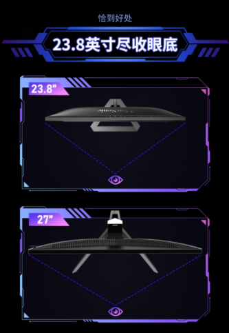 VX24G81-2K采用23.8英寸“黃金電競(jìng)尺寸”,這是由于電競(jìng)玩家的視域范圍常常集中在屏幕中心,過(guò)大的屏幕尺寸會(huì)讓邊緣畫(huà)面需要眼球轉(zhuǎn)動(dòng)甚至頭部移動(dòng)才能捕捉,在分秒必爭(zhēng)的電競(jìng)場(chǎng)上容易因?yàn)樾畔p失而敗北。23.8英寸的屏幕寬度恰好與人體自然坐姿下的視域范圍匹配,配合2560×1440的QHD分辨率,實(shí)現(xiàn)了123 PPI的像素密度,平衡了電競(jìng)玩家的視野與專注。