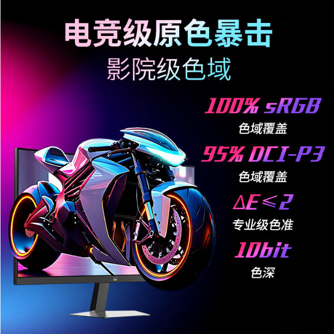 此外,該顯示器的色彩表現也可圈可點,充分滿足電競玩家對畫面細膩度與色彩還原的高需求,帶來一個豐富飽滿的游戲視界。它實現了100% sRGB與95% DCI-P3的雙廣色域覆蓋,支持10.7億顯示色數,并擁有ΔE≤2的精準色彩控制,確保了每一幀畫面的鮮活真實,讓虛擬的游戲世界更具真實感。